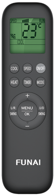Высокая мощность и эффективность настенного японского кондиционера Funai (Фунай) RAC-I-BS30HP.D01 превосходно сочетается со стильным дизайном в черном цвете. На внутреннем блоке предусмотрен информативный дисплей для вывода температуры и настроек, а в комплекте имеется пульт дистанционного управления.